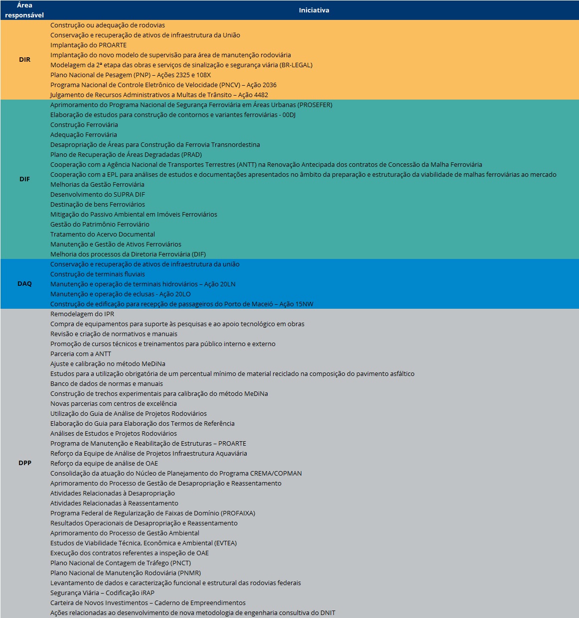 Para consultar os resultados detalhados das iniciativas, projetos e programas, acesse os links abaixo conforme área responsável: