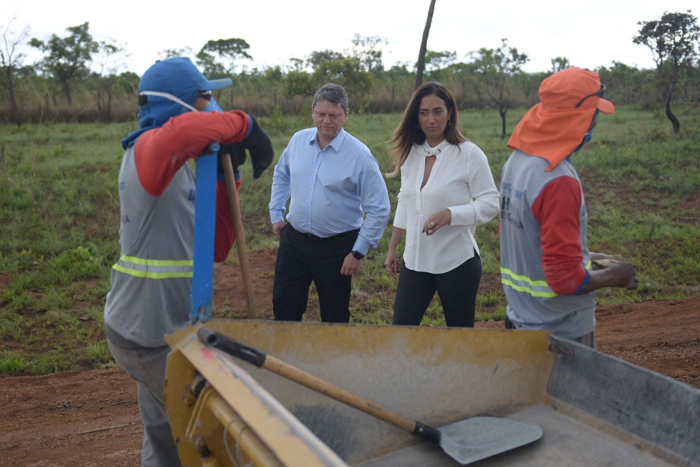 O ministro da Infraestrutura, Tarcísio Gomes de Freitas, a ministra da Secretaria de Governo, Flávia Arruda, e o diretor substituto de Infraestrutura Rodoviária do Departamento Nacional de Infraestrutura de Transportes (DNIT), Lucas Vissoto, realizaram nesta quarta-feira (3) uma visita às obras de restauração na BR-251/DF, no segmento que liga o entroncamento com a BR-040/DF ao entroncamento com a DF-140.