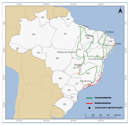 Além do levantamento, haverá apresentações do veículo TSD em 7 cidades, de diferentes estados, conforme o mapa abaixo: