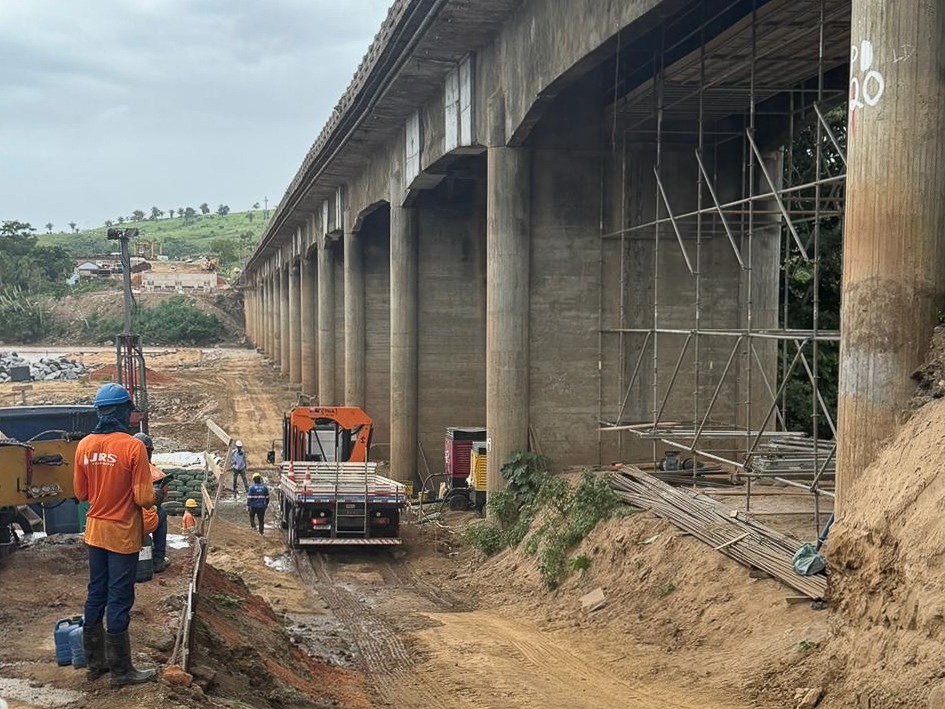 Atualmente, os serviços estão concentrados na execução das fundações, incluindo a concretagem dos blocos e pilares, além da implantação das vigas pré-moldadas que irão compor o tabuleiro da nova estrutura. Paralelamente, avançam as atividades de infraestrutura e mesoestrutura, assim como a terraplenagem dos encontros, já em fase de execução.