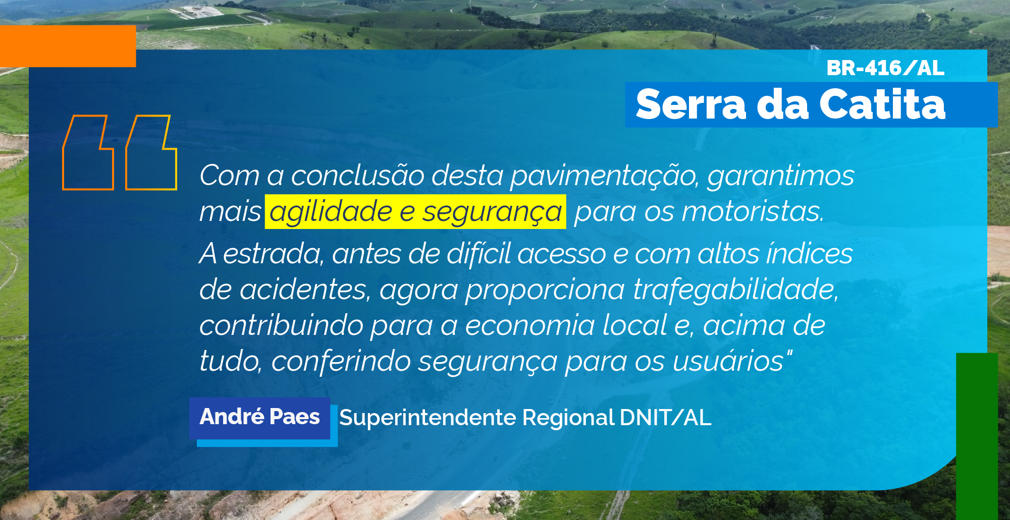 A pavimentação da Serra da Catita, único segmento rodoviário sob administração do DNIT que não era pavimentado no estado, é responsável pela ligação da BR-101/AL com a BR-104/AL. Com a liberação ao tráfego, o empreendimento trará benefícios significativos para o desenvolvimento local e a integração de Alagoas com o estado de Pernambuco e muito mais segurança na trafegabilidade da região.