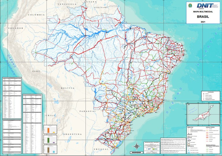 O Departamento Nacional de Infraestrutura de Transportes – DNIT publicou os novos Mapas Multimodais referentes ao ano de 2021. No material, destacam-se os três modos de transporte: rodoviário, ferroviário e aquaviário.