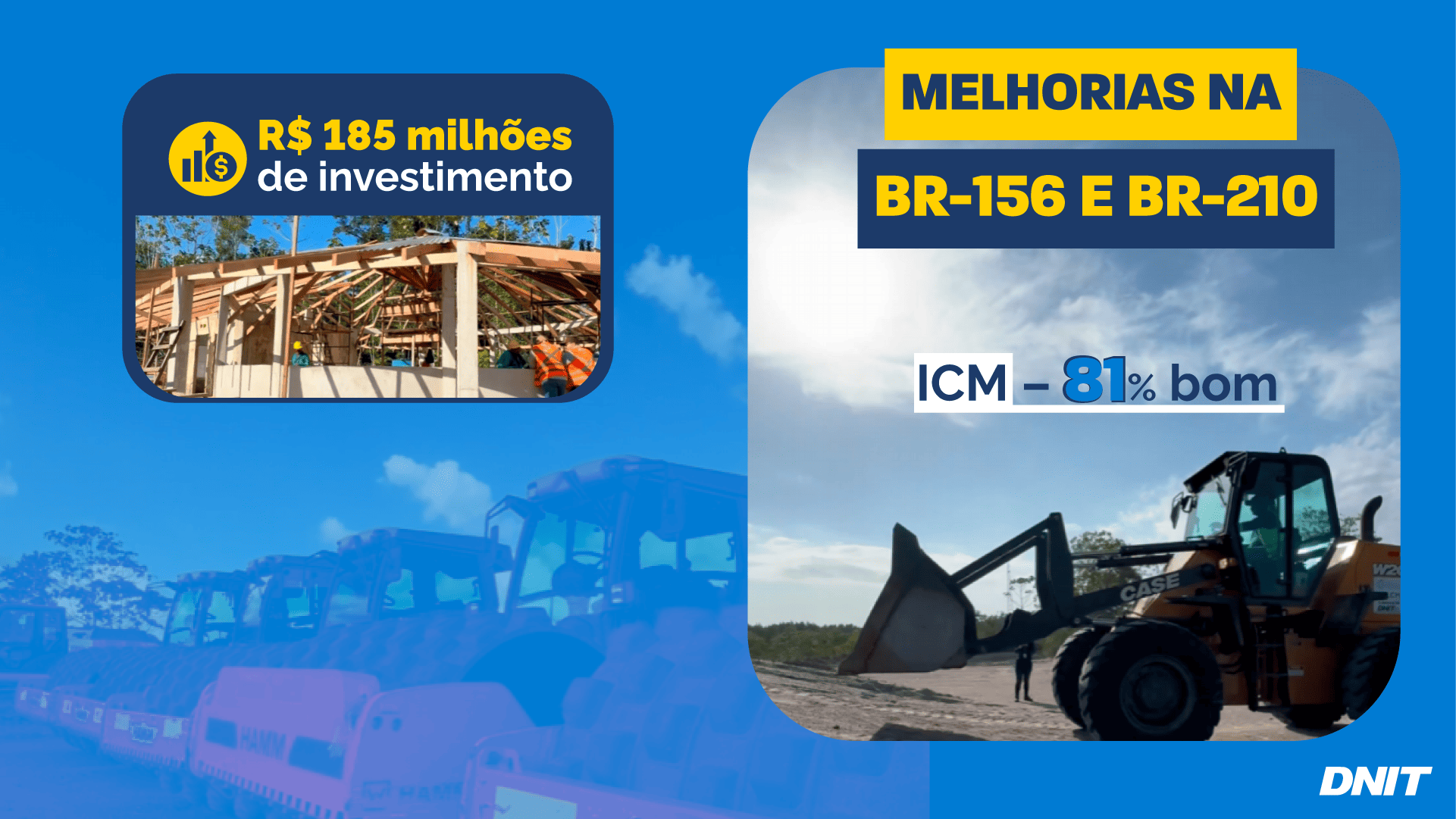 Em 2025, foram investidos mais de R$ 124 milhões na manutenção das rodovias federais (BR-156 e BR-210) e R$ 61 milhões na construção rodoviária da BR-156/AP. Os investimentos realizados pelo Governo Federal garantiram um marco histórico para o Amapá, com dois anos e meio sem registros de atoleiros, proporcionando mais segurança e redução no tempo de viagem de 18 horas para 7 horas no trajeto entre Macapá e Oiapoque, e de 8 horas para 4 horas no trecho entre Macapá e Laranjal do Jari.