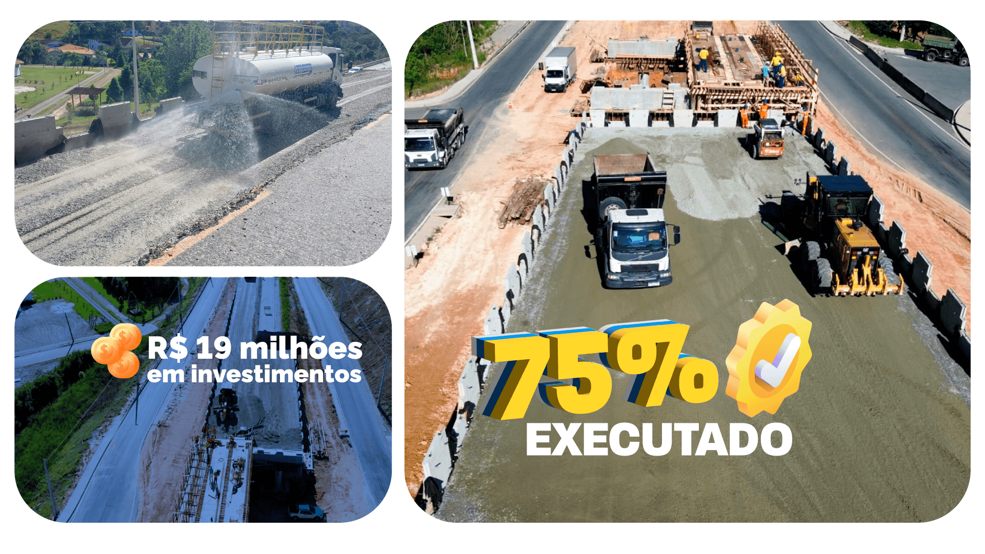 Também seguem em execução as estruturas de solo reforçado, conhecidas como terras armadas, que compõem os aterros de encontro do viaduto. Para a finalização do empreendimento, ainda serão concluídas a superestrutura e as terras armadas, além da execução dos serviços de pavimentação, drenagem, sinalização e demais obras complementares sobre o viaduto e seus acessos.