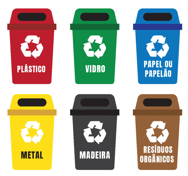 Através das cores dos coletores, ocorre a separação dos resíduos e a diminuição de materiais recicláveis que acabam sendo enviados aos aterros sanitários.
