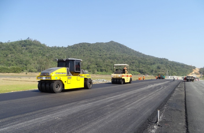 Nas últimas semanas as atividades se concentraram na execução da base de pavimentação com implantação de material rochoso e aplicação da massa asfáltica para construção do pavimento. Os trechos com pavimentação são: km 51+350 ao km 51+400 e km 53+460.
