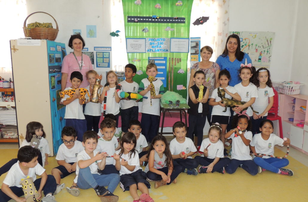 O Projeto “BR-280 e Mata Atlântica”, desenvolvido pela turma do Pré II, da Escola Max Schubert de Jaraguá do Sul, ganhou prêmio destaque no evento Movimento Jaraguá em Ciências, realizado no mês de setembro. Ele teve como base o trabalho desenvolvido pela equipe da Gestão Ambiental da obra de duplicação da rodovia. A temática do projeto tratou da obra e do bioma da região. A turma de 24 alunos da professora Lorili Todt, juntamente com a coordenadora Lucila Martins, realizou pesquisas, trabalhou com as famílias na confecção das mascotes da BR-280/SC, realizou maquetes, jogos, atividades e gráficos. As crianças envolveram-se com o projeto, aprendendo sobre as questões do dia a dia aplicadas à matemática e, ainda, colocaram a mão na massa, produzindo as mascotes.
