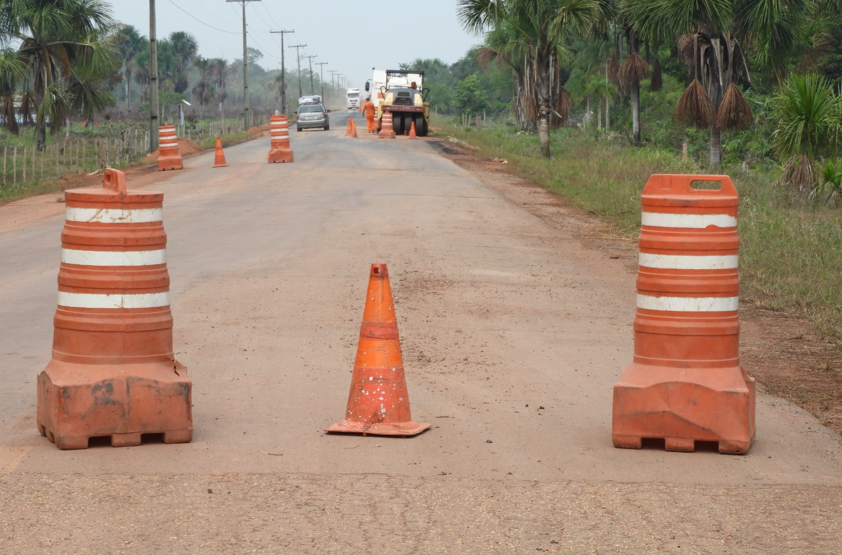 Assim, em conformidade com o Código de Trânsito Brasileiro - CTB, as construtoras instalam sinalizações visíveis e legíveis durante o dia e noite, em distância adequada para a segurança do trânsito como cones refletores, placas verticais e bandeiras de advertência.