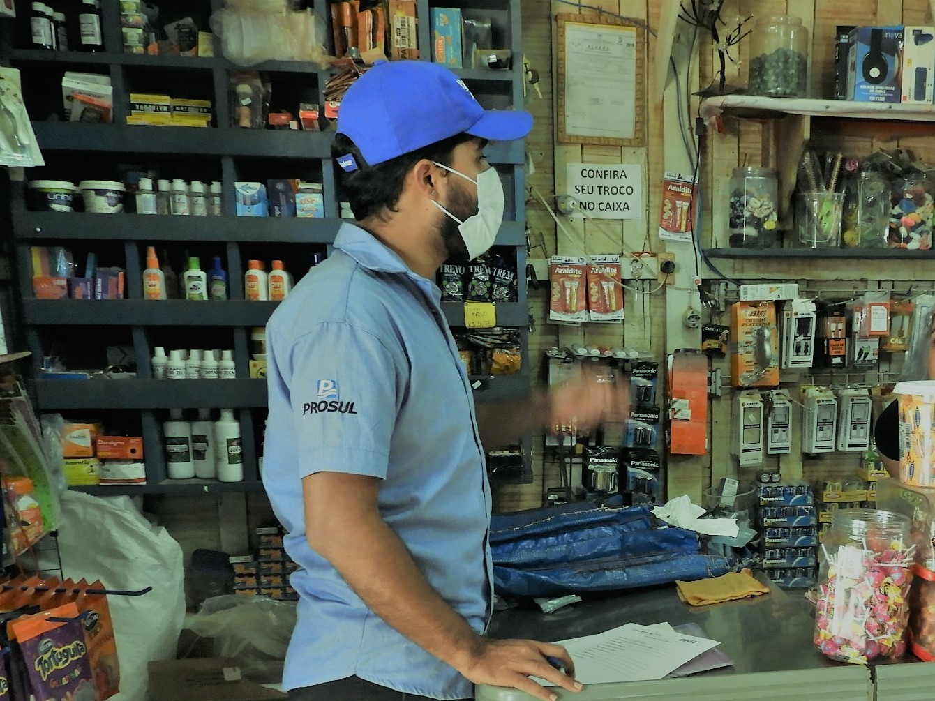 Equipe de comunicação social em conversa com trabalhadora no comércio em Realidade (Km 589)