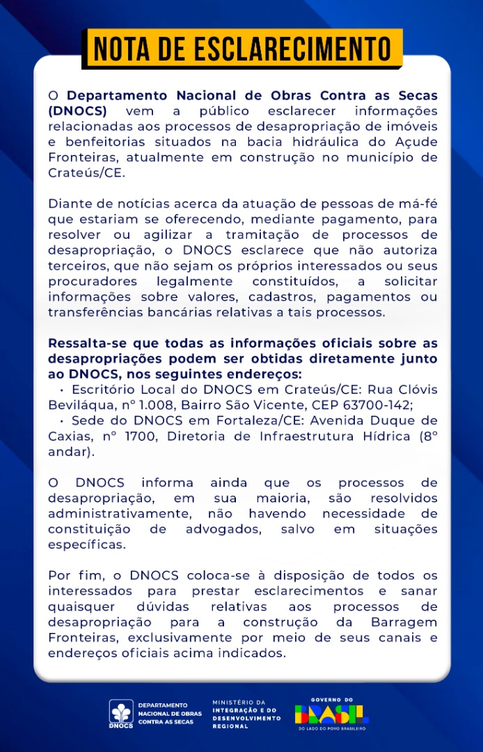 Permite protocolar online documentos ao DNOCS.