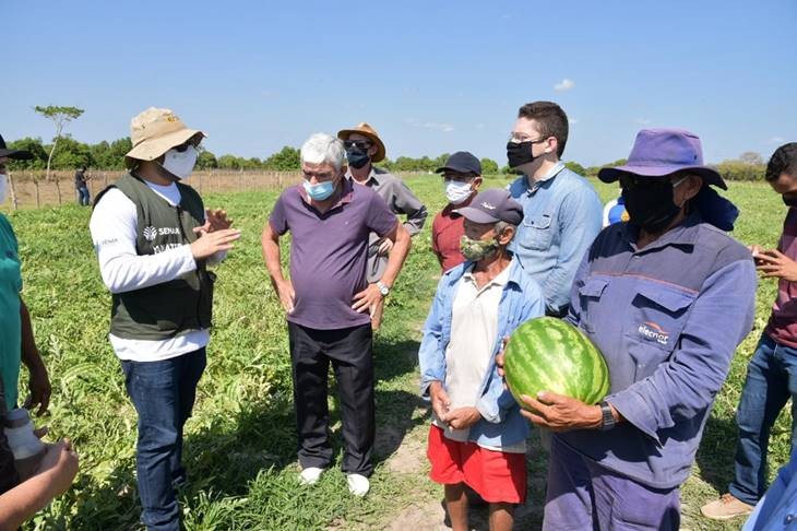 Os agricultores do Perímetro Irrigado Caldeirão receberam a visita do Coordenador Estadual do DNOCS no Piauí, Christopher Jorge Amorim, do deputado Mardem Menezes e do prefeito de Piripiri, Luiz Menezes. O perímetro está localizado no município de Piripiri, a 165 quilômetros de Teresina, capital piauiense.
