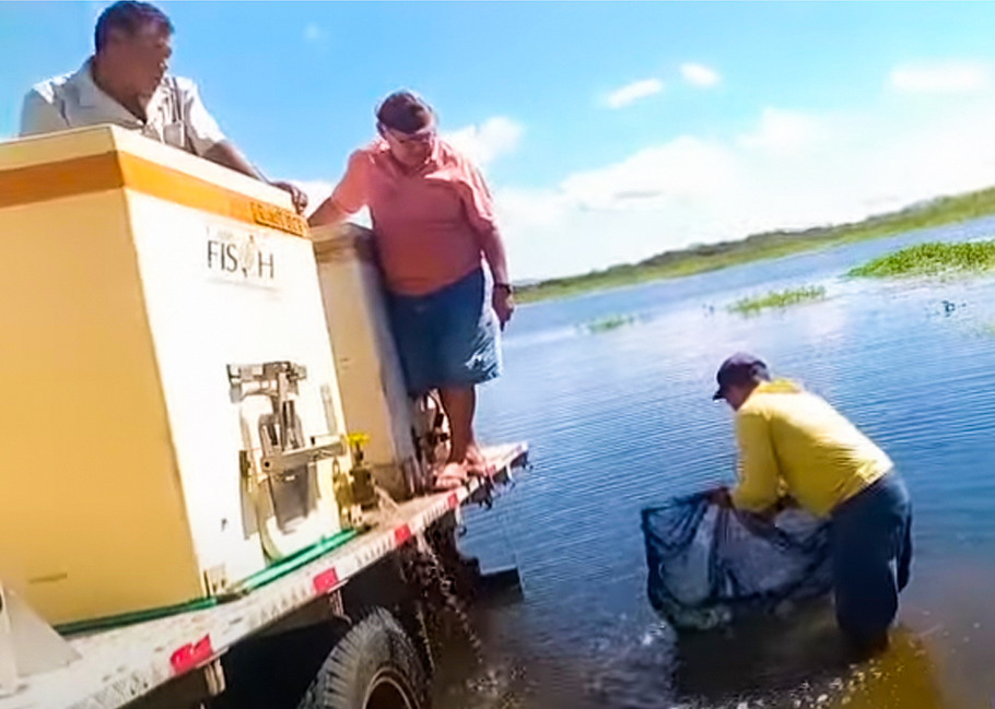 O Departamento Nacional de Obras Contra as Secas (DNOCS) realizou a distribuição de 5 mil alevinos no Açude de Caxitoré, localizado no município de Umirim, no interior do Ceará.