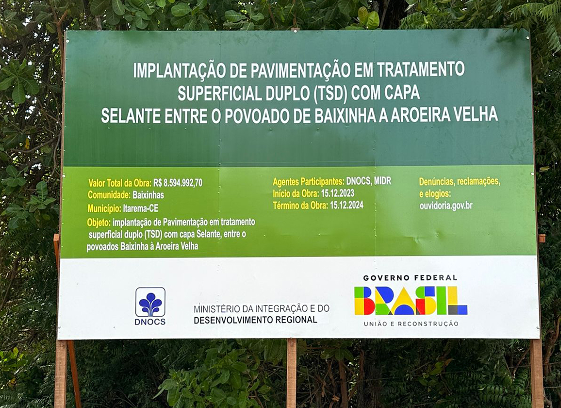 Com um investimento total de 8,5 milhões de reais, o projeto abrange a pavimentação de 16 quilômetros, conectando os povoados de Baixinha e Aroeira Velha. Os recursos foram oriundos de emenda parlamentar do Deputado Federal Robério Monteiro (PDT/CE). A obra de pavimentação não tem apenas o objetivo de melhorar a mobilidade, mas também impactar positivamente a qualidade de vida da população local, fomentando o desenvolvimento econômico e social da região.