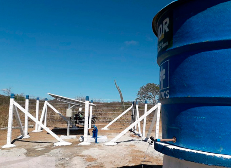 Além de realizar a instalação de poços que funcionam a partir da energia solar, o DNOCS tem apoiado comunidades por meio de aquisição e distribuição de equipamentos na área. Nesse contexto, vale ressaltar que em 2022 foram distribuídos materiais para manutenção do funcionamento de poços já existentes, sendo mais de 600 eletrobombas, cerca de 140 placas solares e mais de 100 conversores solares no estado do Piauí, além de materiais para a instalação de cerca de 100 sistemas simplificados de abastecimento de água no estado de Minas Gerais.
