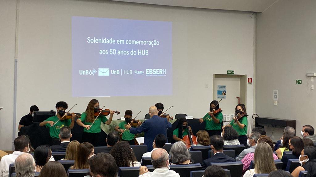 Evento de encerramento das atividades dos 50 anos do HUB-UnB aconteceu no auditório 1, com transmissão pelo Teams, e contou com apresentações musicais, vídeo comemorativo e entrega de homenagens a pessoa que fizeram e fazem parte desta história.