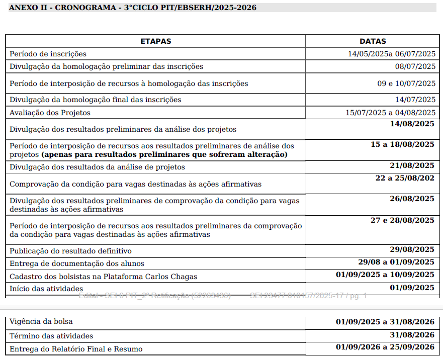 - Anexo III - Instruções para elaboração de Projetos de Iniciação Tecnológica;