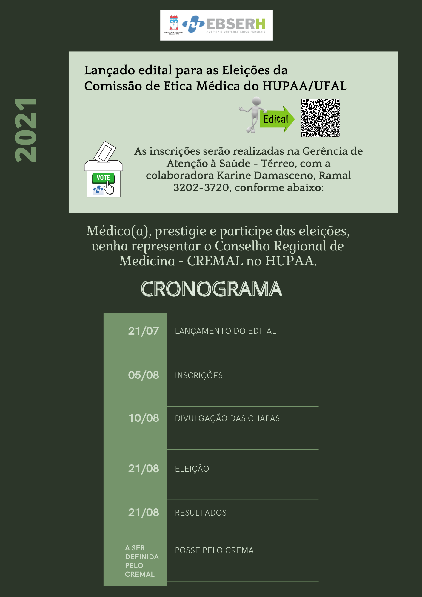 Eleição para a Comissão de Ética Médica do HUPAA/UFAL 2021.