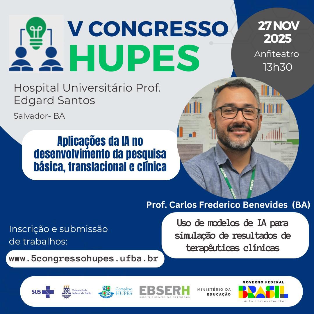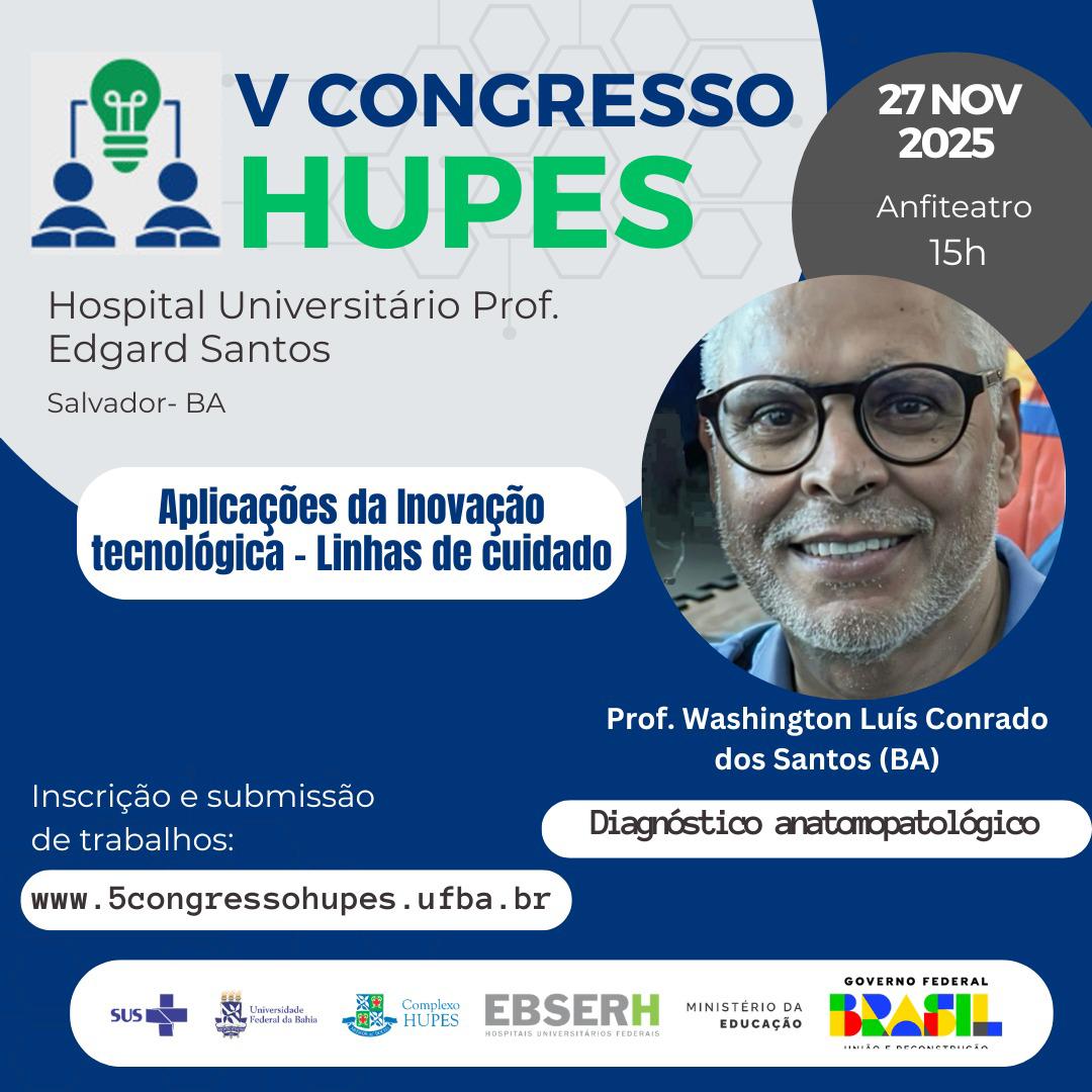 O V Congresso do HUPES irá reunir profissionais, estudantes e gestores da área da saúde em um espaço de troca de experiências, aprendizado e reflexão sobre os desafios e avanços da assistência hospitalar. Com o tema “Inovação a Serviço da Assistência e do ensino”, o evento propõe discutir como novas tecnologias, práticas e modelos de gestão podem aprimorar o cuidado ao paciente, fortalecer a integração entre ensino, pesquisa e serviço, e impulsionar a qualidade e a humanização na atenção em saúde. Serão dois dias de palestras, mesas-redondas e apresentações de trabalhos, com participação de especialistas do HUPES, da UFBA e de instituições parceiras.