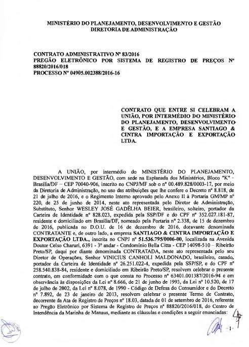 Termo de Execução Descentralizada nº 17/2016, de 18 de dezembro de 2016 – publicado no D.O.U. em 19/12/216 – Processo SEI/MP nº 04905.001991/2016-81