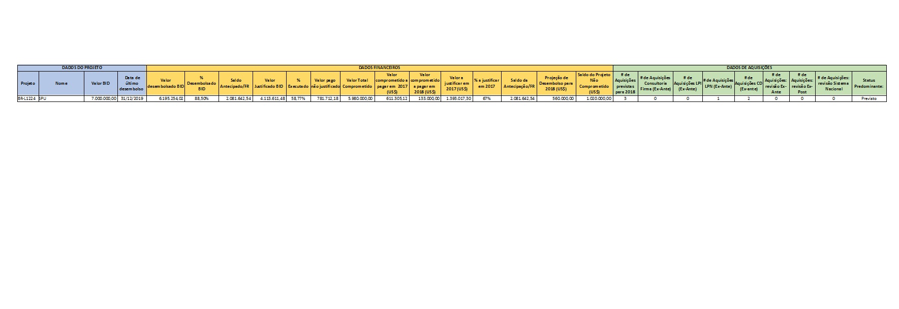 Dados dos projetos, Dados financeiros e Dados de Aquisições