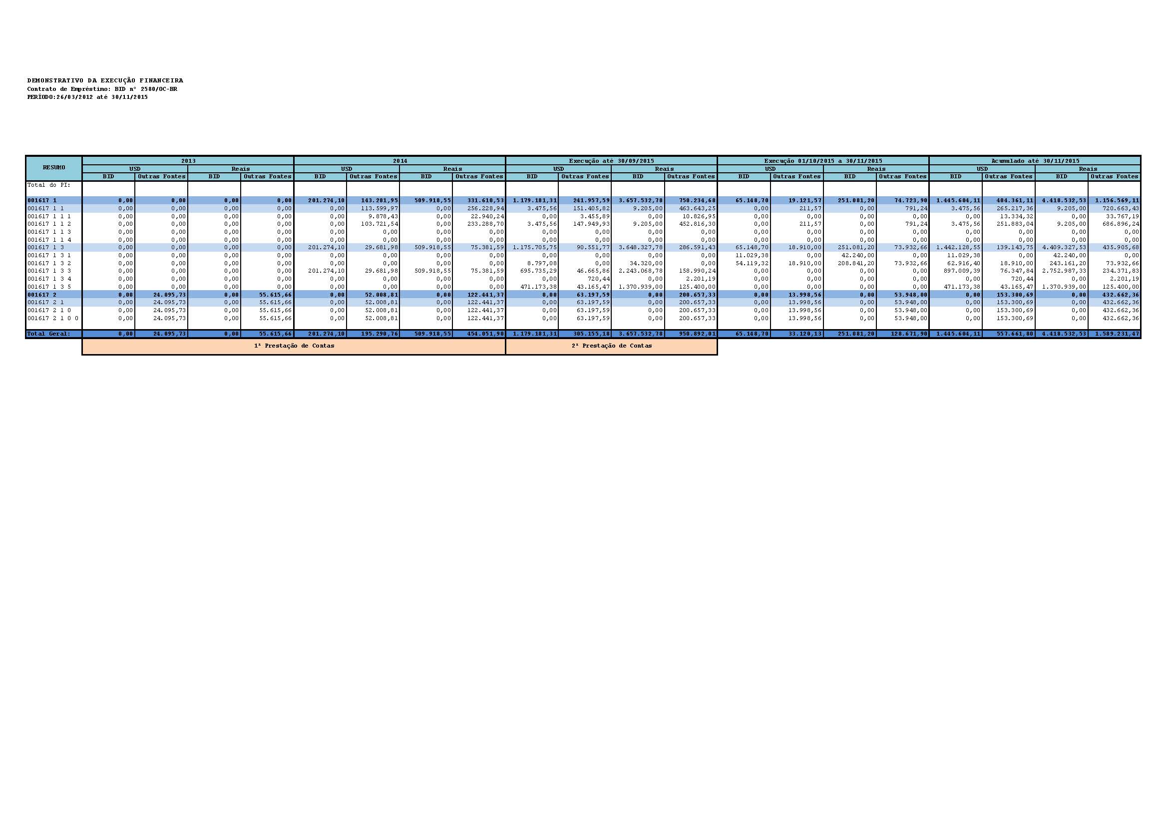 Demonstrativo da Execução Financeira referente ao período de 26 de março a 30 de novembro de 2015.