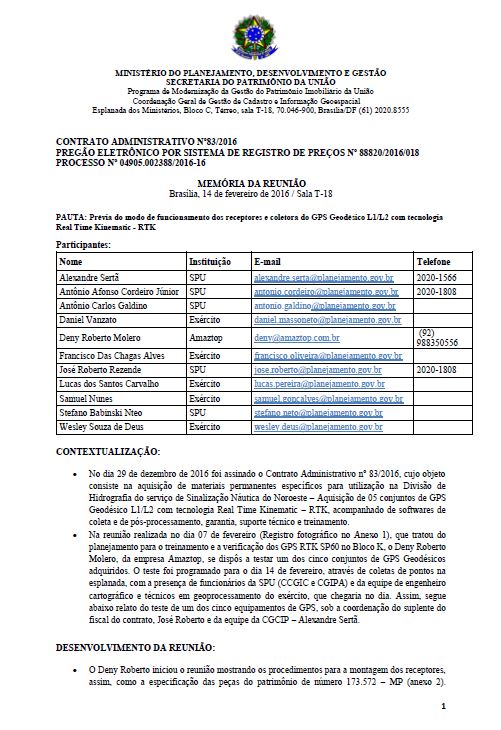 Ajuda Memória reunião de planejamento do treinamento e teste do equipamento GPS RTK