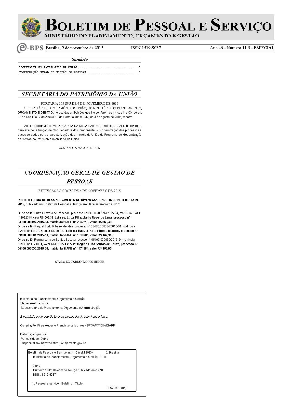 PORTARIA SPU Nº 195, DE 4 DE NOVEMBRO DE 2015