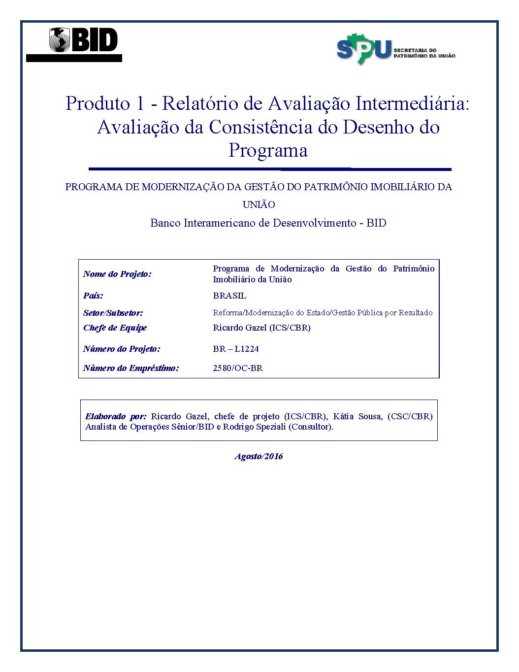 Produto 1 - Relatório de Avaliação Intermediária: Avaliação da Consistência do Desenho do Programa