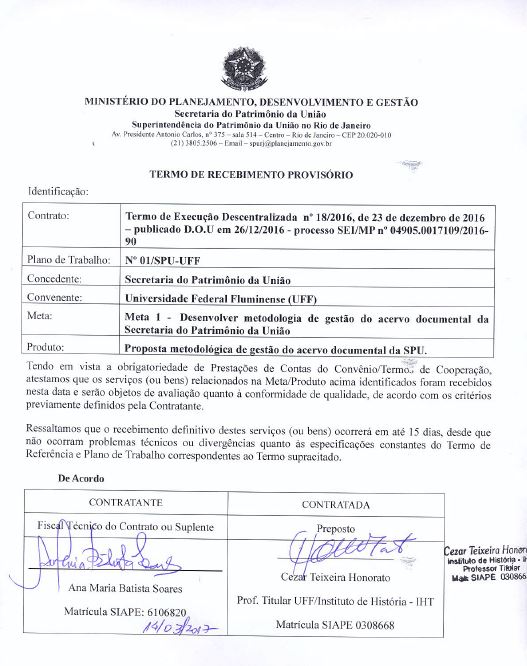 Projeto Acervo Documental - Termo de Recebimento Provisório