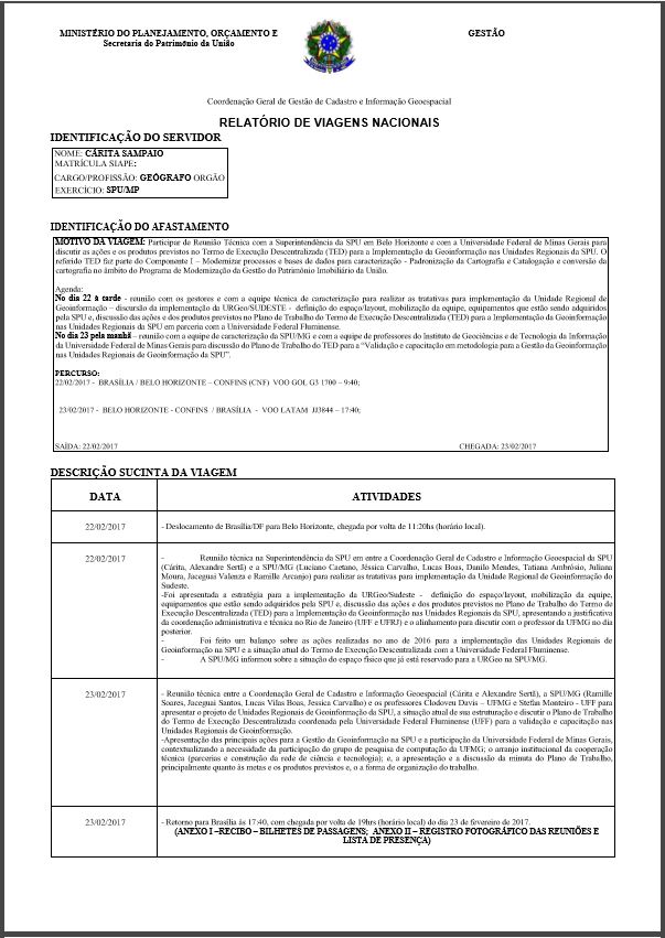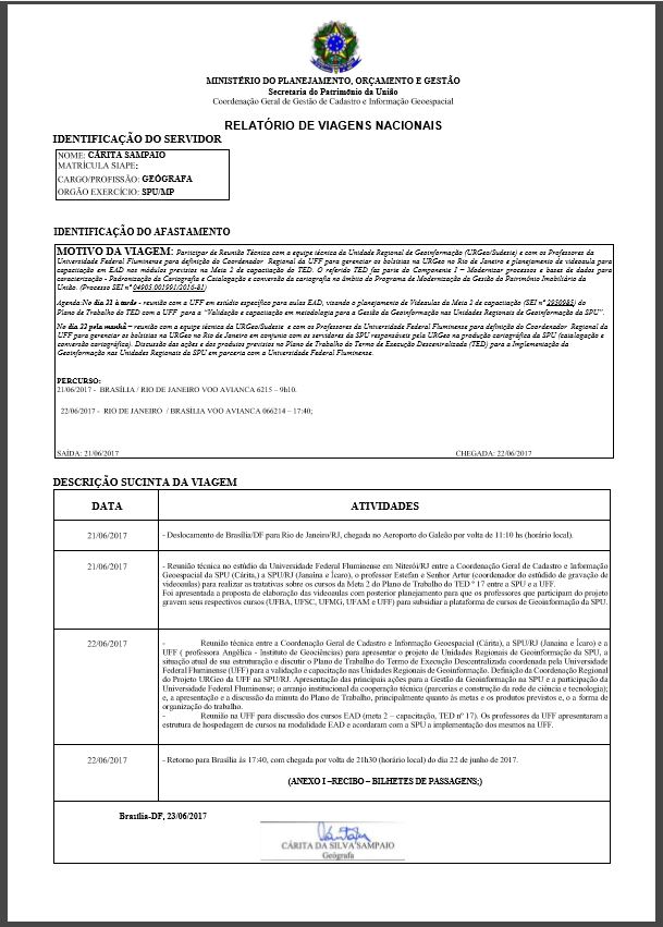 RELATÓRIO DE VIAGENS NACIONAIS e AJUDA MEMORIA DAS REUNIÕES NO RIO DE JANEIRO