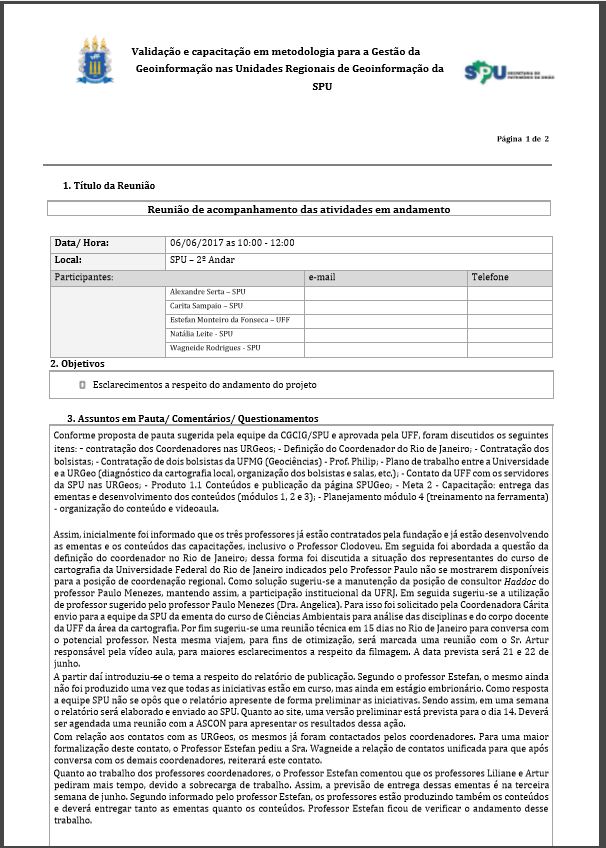 Reunião Técnica com a Superintendência da SPU em Belo Horizonte e com a Universidade Federal de Minas Gerais para discutir as ações e os produtos previstos no Termo de Execução Descentralizada (TED) para a Implementação da Geoinformação nas Unidades Regionais da SPU