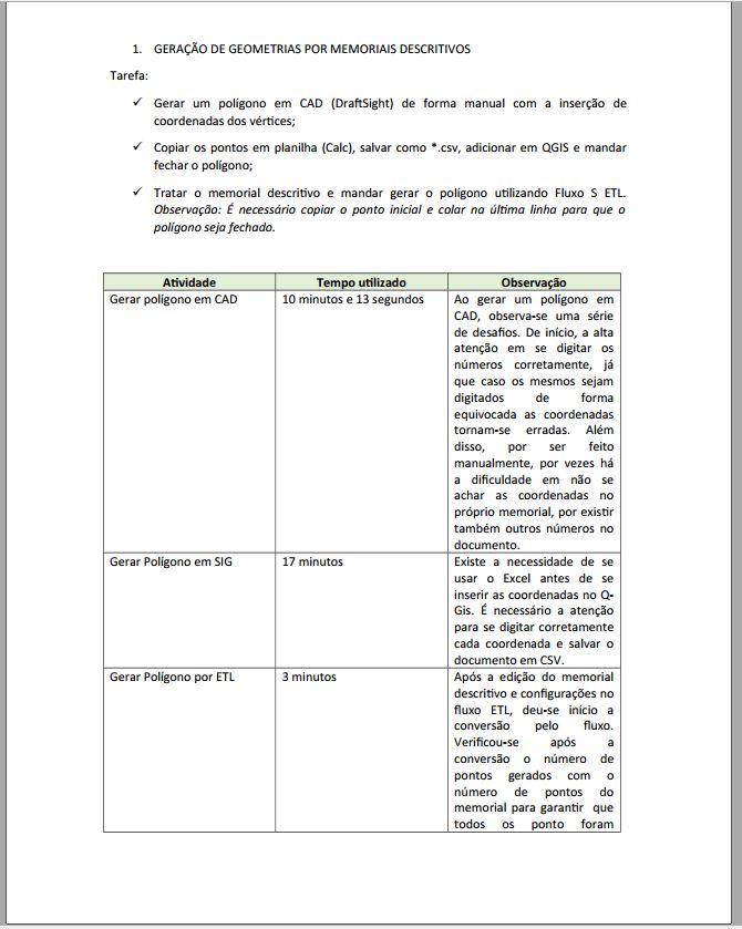 [FME] Relatório com resultados dos fluxos de conversão de memoriais descritivos em PDF