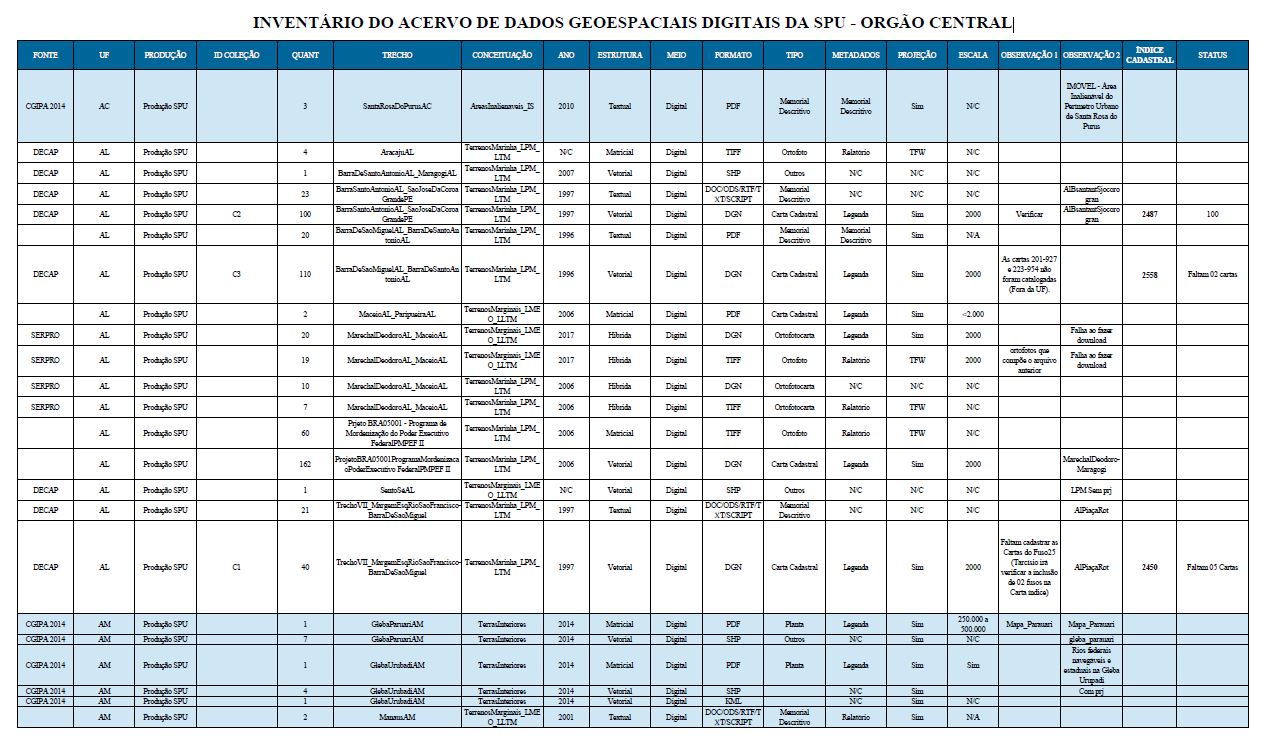 INVENTÁRIO DO ACERVO DE DADOS GEOESPACIAIS DIGITAIS DA SPU - ORGÃO CENTRAL