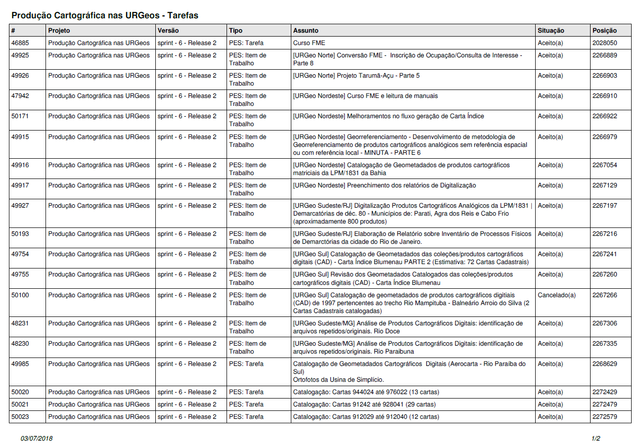 Planilha de Gerenciamento da Produção Cartográfica nas URGeos