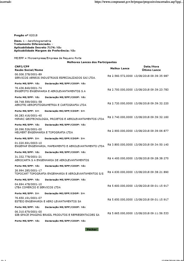Lances dos participantes do Pregão Eletrônico nº 06/2018