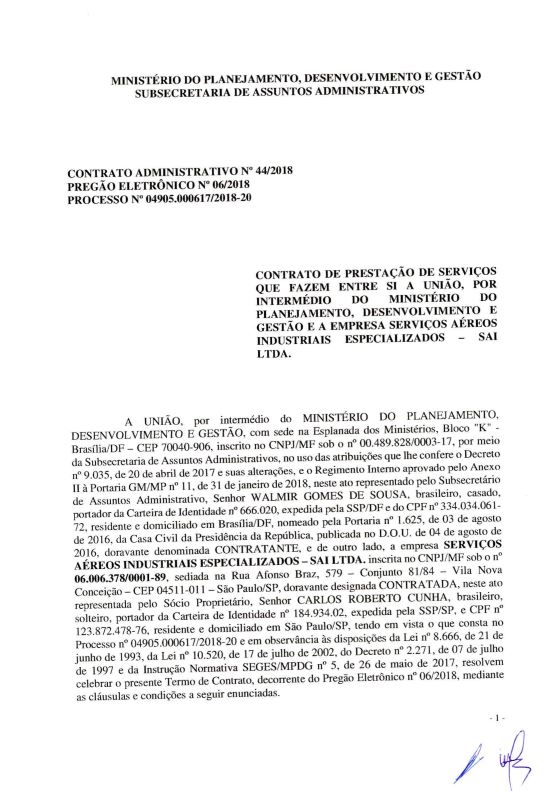 CONTRATO ADMINISTRATIVO nº 44/2018 PREGÃO ELETRÔNICO N° 06/2018 PROCESSO N° 04905.000617/2018-20
