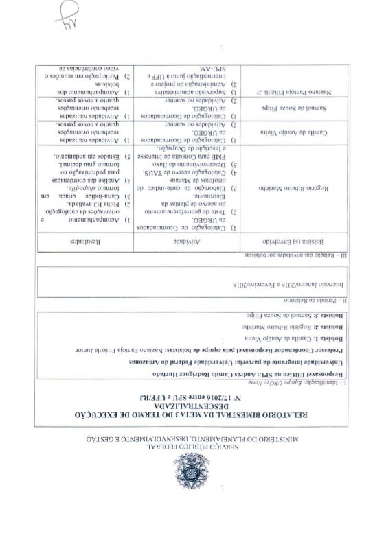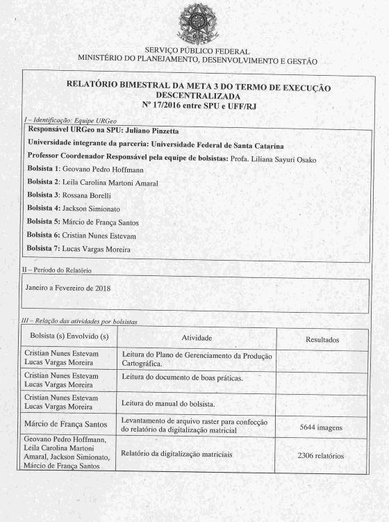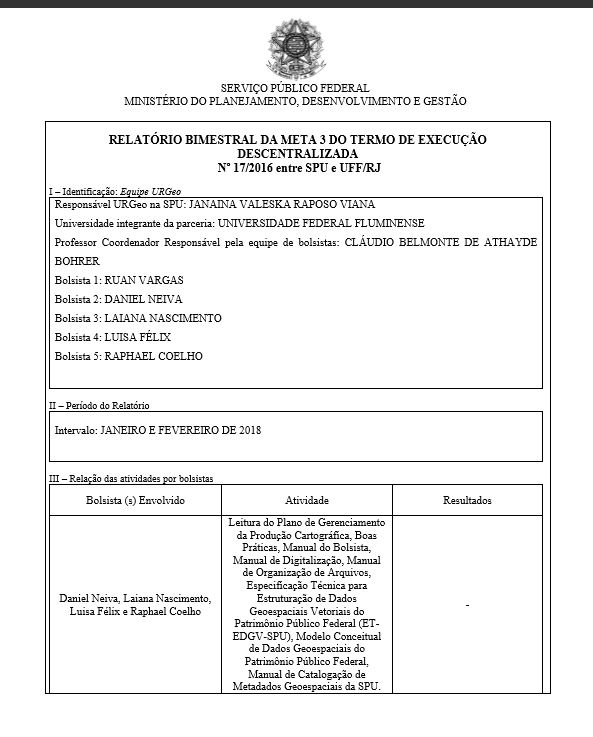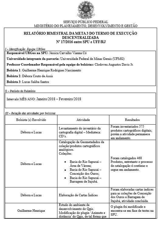 RELATÓRIO BIMESTRAL DA META 3 DO TERMO DE EXECUÇÃO DESCENTRALIZADA Nº 17/2016 entre SPU e UFF/RJ