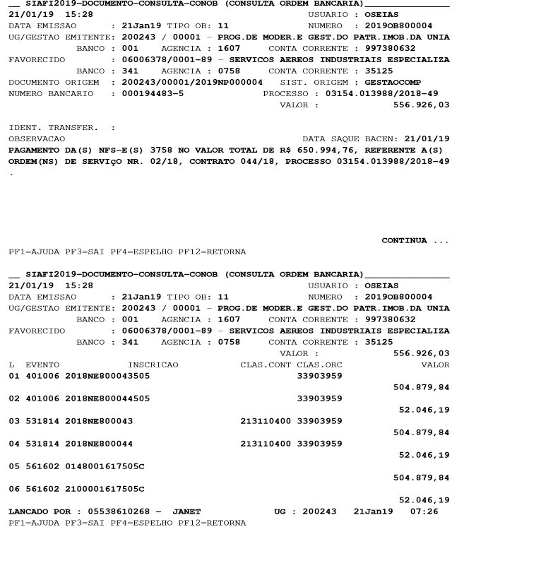 PAGAMENTO DA(S) NFS-E(S) 3758 NO VALOR TOTAL DE R$ 650.994,76, REFERENTE A(S) ORDEM(NS) DE SERVIÇO NR. 02/18, CONTRATO 044/18, PROCESSO 03154.013988/2018-49