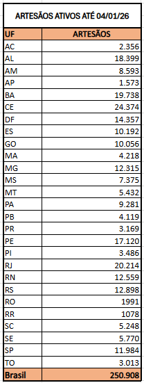 ARTESÃOS ATIVOS ATÉ 04 DE JANEIRO 26