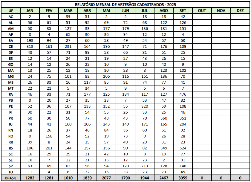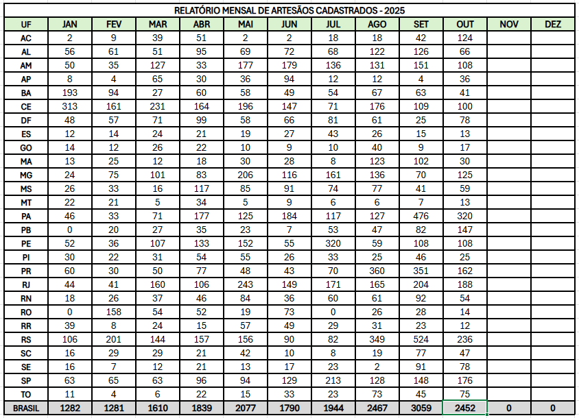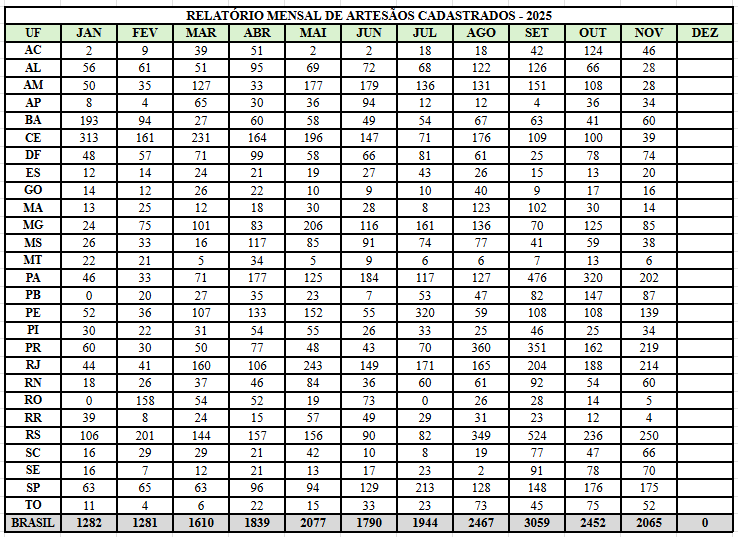 RELATÓRIO MENSAL DE ARTESÃOS CADASTRADOS