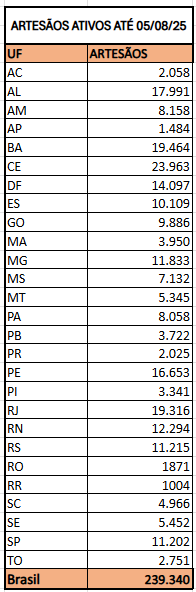 ARTESÃOS ATIVOS ATÉ 05 DE AGOSTO