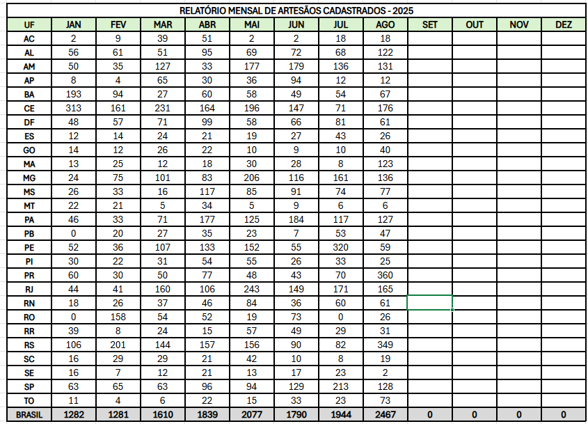 RELATÓRIO MENSAL DE ARTESÃOS CADASTRADOS
