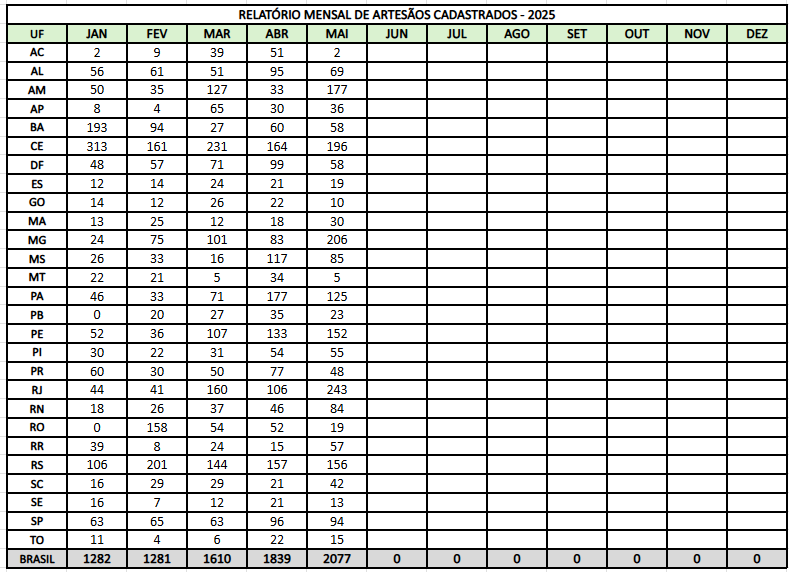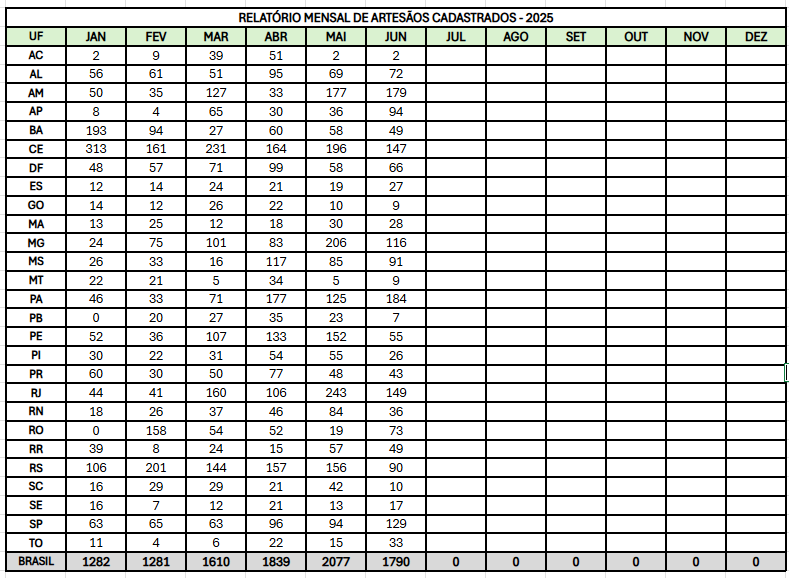 RELATÓRIO MENSAL DE ARTESÃOS CADASTRADOS