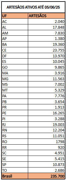 ARTESÃOS ATIVOS ATÉ 05/06/25