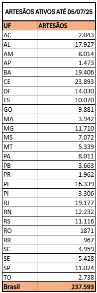 ARTESÃOS ATIVOS ATÉ 05 DE JULHO DE 2025