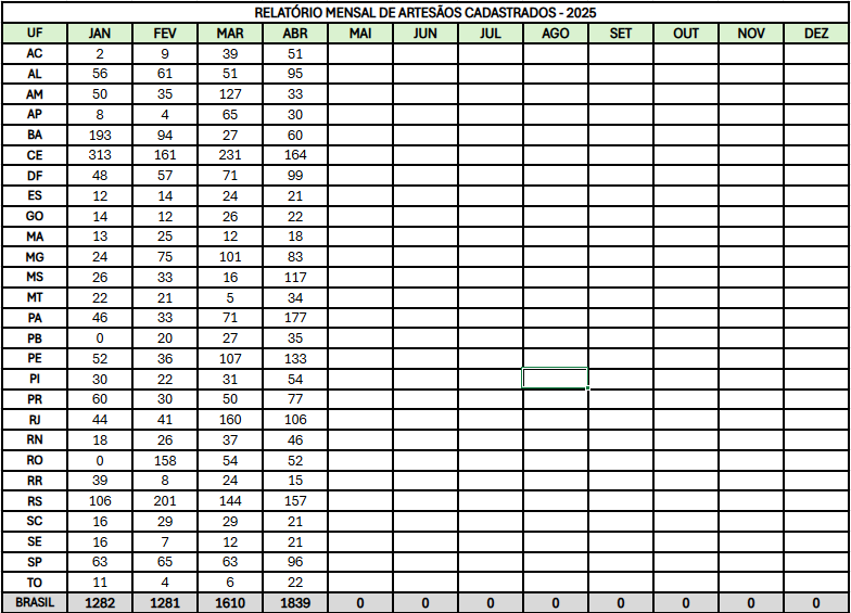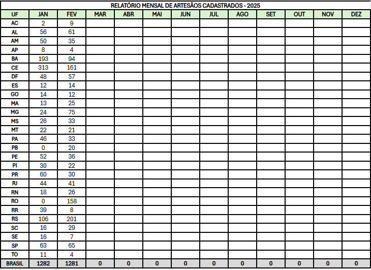 RELATÓRIO MENSAL DE ARTESÃOS CADASTRADOS 2025