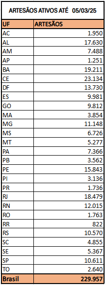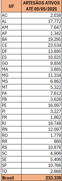 ARTESÃOS ATIVOS ATÉ 05/05/25