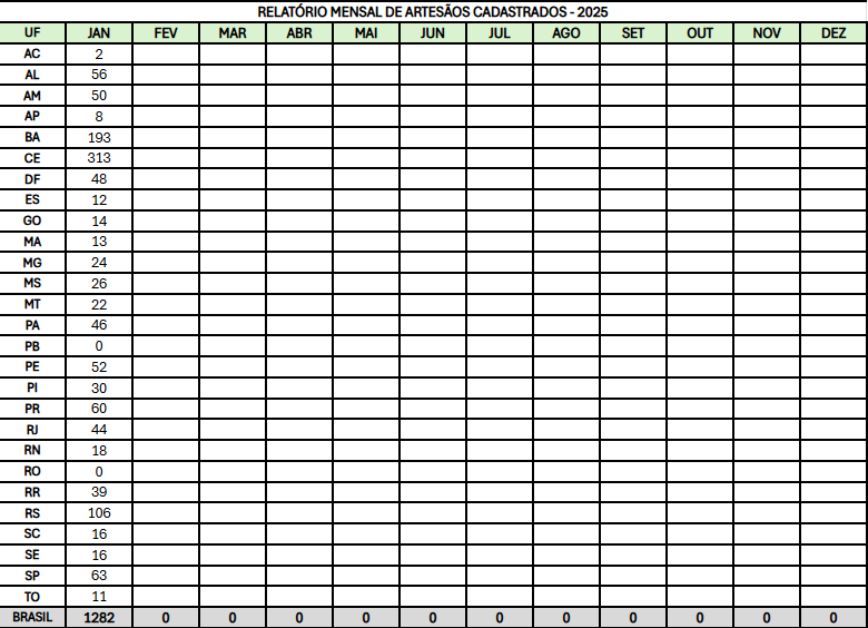RELATÓRIO MENSAL DE ARTESÃOS CADASTRADOS 2025