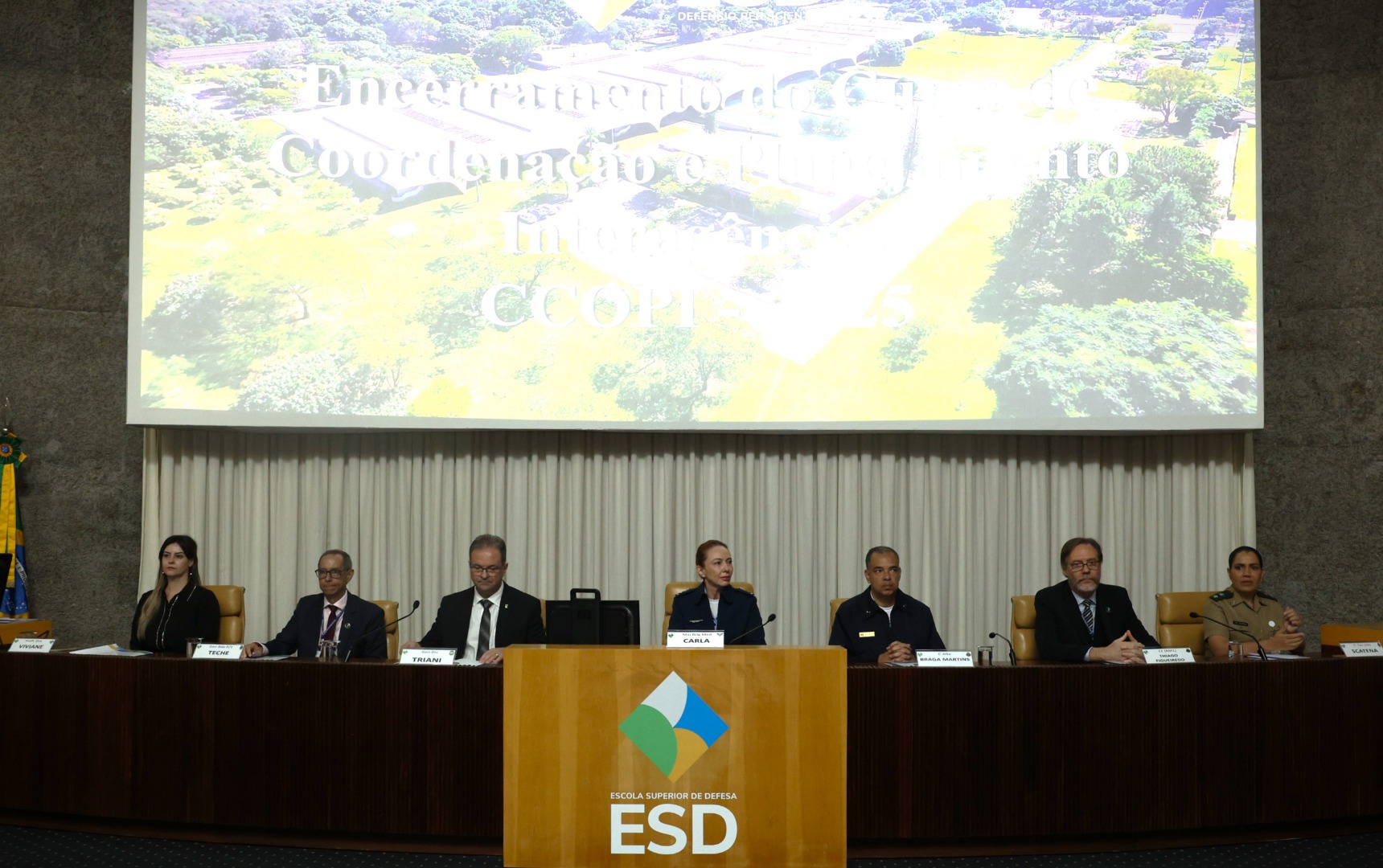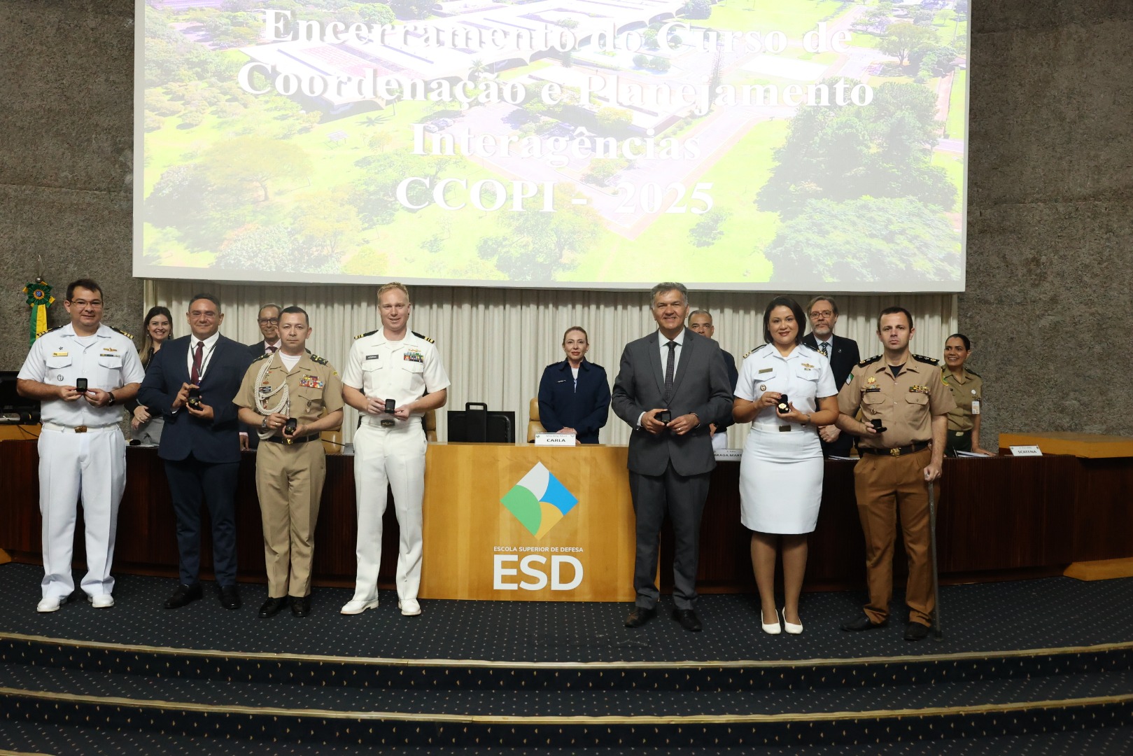 O Curso de Coordenação e Planejamento Interagências (CCOPI) 2025 foi encerrado na manhã desta sexta-feira (30), em cerimônia realizada no auditório da Escola Superior de Defesa (ESD). O evento foi marcado, também, pela assinatura do Plano de Trabalho nº 01/2025, instrumento que integra o Acordo de Cooperação Técnica celebrado entre a ESD e o Gabinete de Segurança Institucional da Presidência da República (GSI/PR).