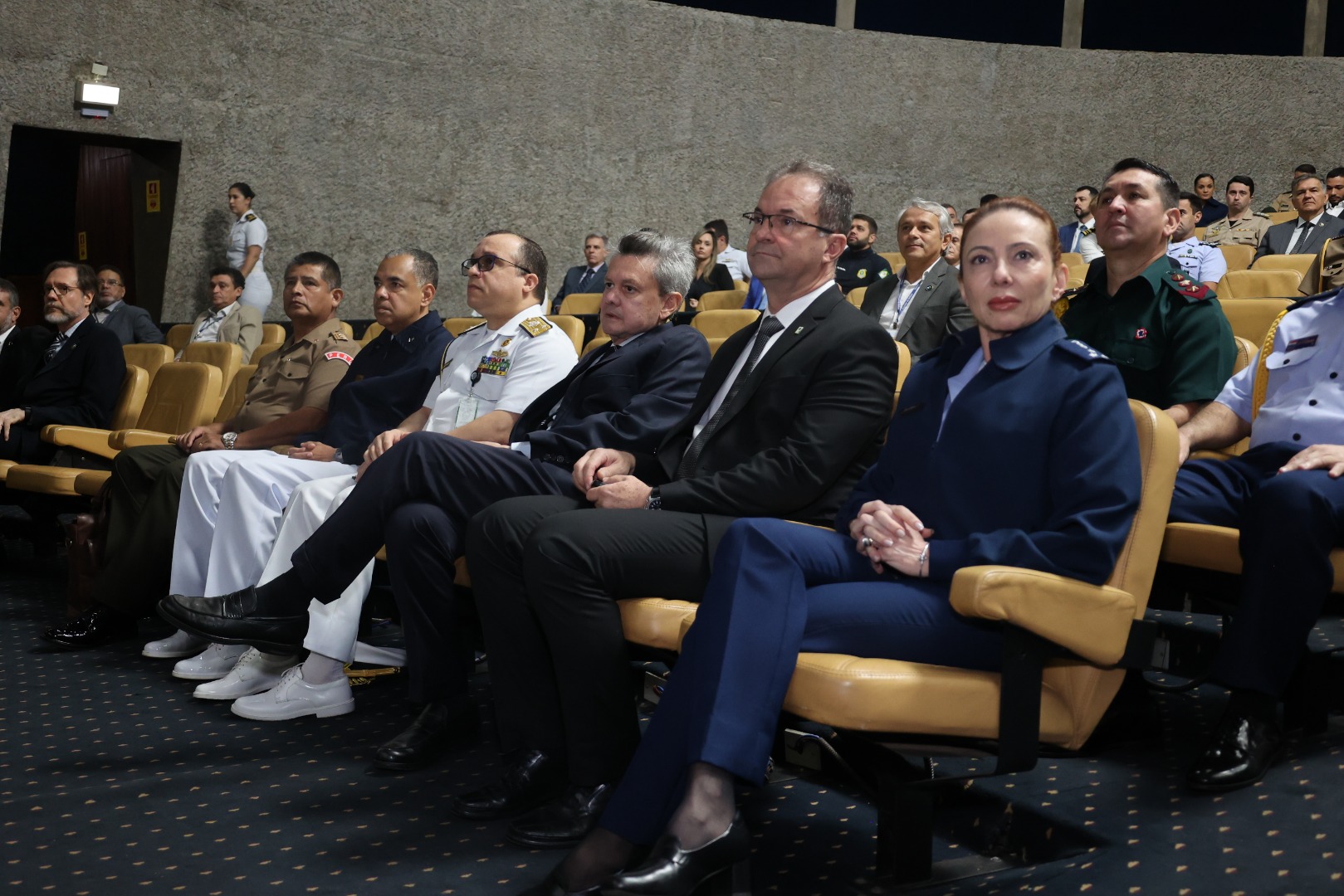 Presidida pela Comandante e Reitora da ESD, Major-Brigadeiro Médica Carla Lyrio Martins, a solenidade contou com a presença de autoridades civis e militares, entre elas o Secretário Executivo do GSI, General de Divisão Washington Rocha Triani; o diplomata de ligação do Ministério das Relações Exteriores junto à ESD, Embaixador George Torquato Firmeza; e o Contra-Almirante Francisco André Barros Conde, Secretário de Acompanhamento e Gestão de Assuntos Estratégicos do GSI e o Contra-Almirante Leonardo Braga Martins, Subcomandante da ESD.